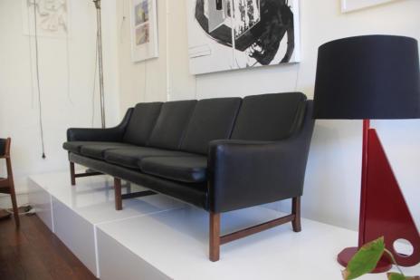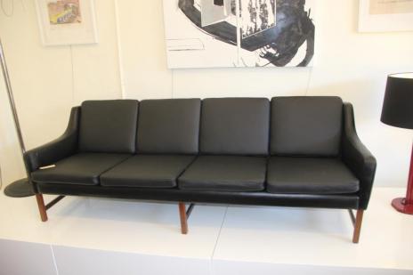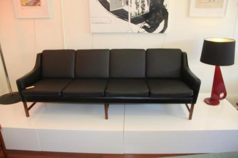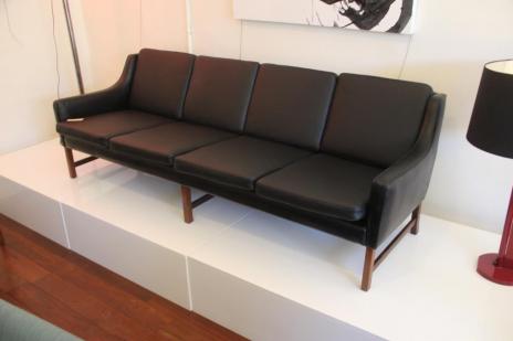 Leather four seater sofa, solid Rosewood legs,Design by Ole wanscher.